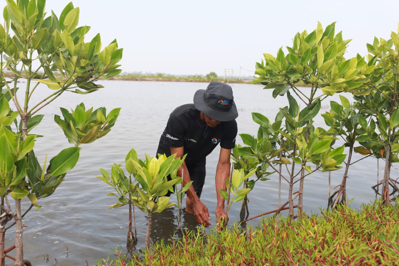Cegah abrasi, sejak tahun 2023 Kelompok Tani Sumber Makmur bersama BRI Peduli telah menggiatkan Program Menanam – Grow & Green : Penanaman 10.000 bibit mangrove di Kecamatan Muara Gembong, Kabupaten Bekasi.