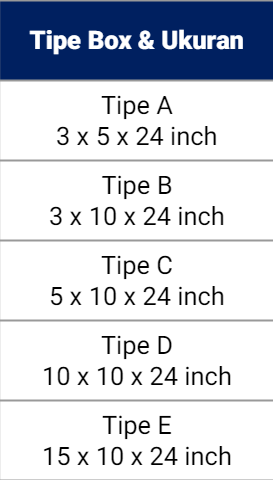 Terdapat beberapa pilihan ukuran SDB sesuai kebutuhan, dimulai dari ukuran ~6 liter (Tipe A) s.d. ~60 liter (Tipe E). Nikmati privilege special rate penyewaan Safe Deposit Box khusus bagi Nasabah BRI Private dan BRI Prioritas.